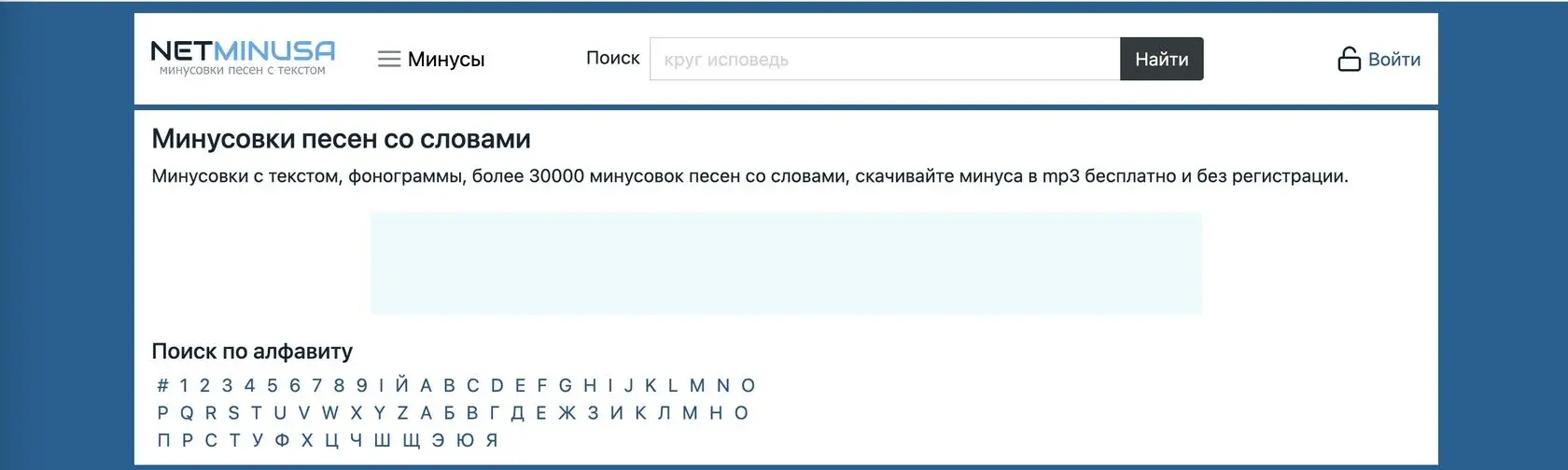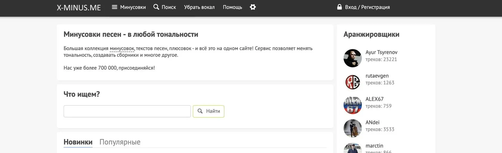 Это аналог сайта x-minus. Он удобен тем, что у него постоянный домен, VPN не нужен, однако количество минусов меньше, чем на x-minus, и функционал сайта скромнее.