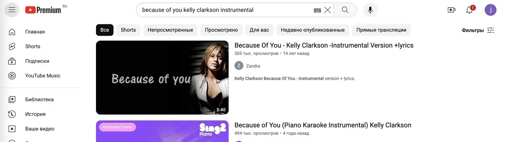 Для поиска нужно набрать в строке поиска название песни + "karaoke" или "instrumental". Также можно добавить "acoustic", "piano" или "guitar", если вы ищите акустический минус.